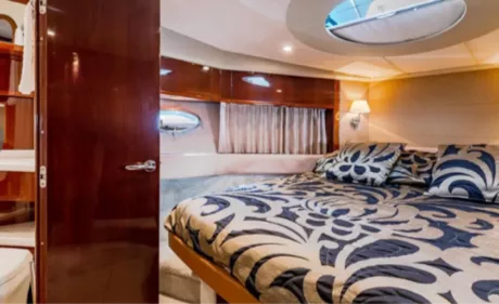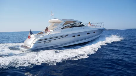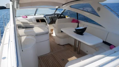With a comfortable interior space complete with bathroom, you will be able to choose between soaking up the sun or chilling in the shade after your swim. The PRINCESS V48 SPORT is the perfect day boat !