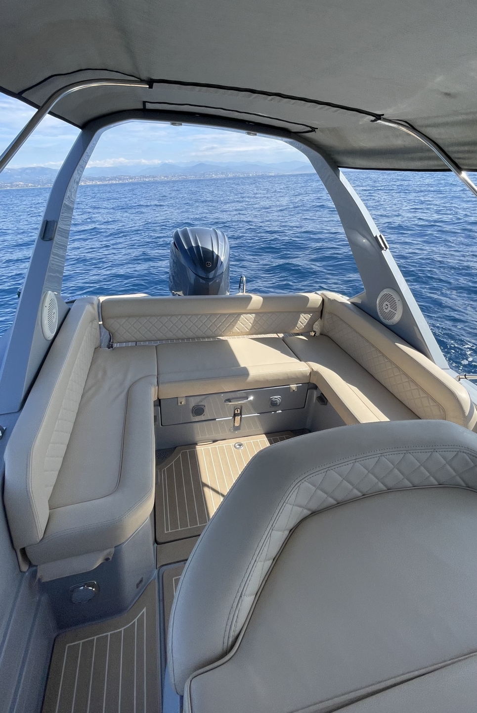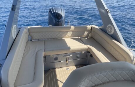 Explore the French Riviera aboard the Salpa Soleil 28, combining comfort and performance. Perfect for discovering Antibes and its hidden coves with family or friends. Enjoy an unforgettable day of swimming, sunbathing, and relaxing on the water.